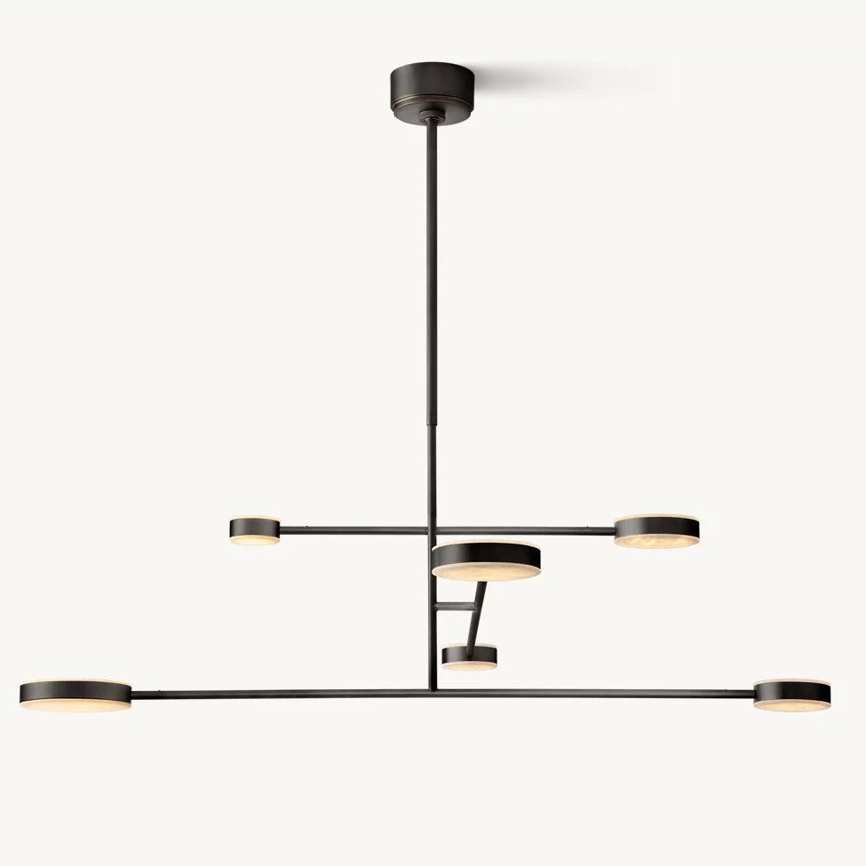 The Alexander Collection explores the interplay of movement and form, where rotating alabaster discs and slender arms evoke a quiet sense of balance. Designed with both purpose and poise, each element shifts light with sculptural precision.