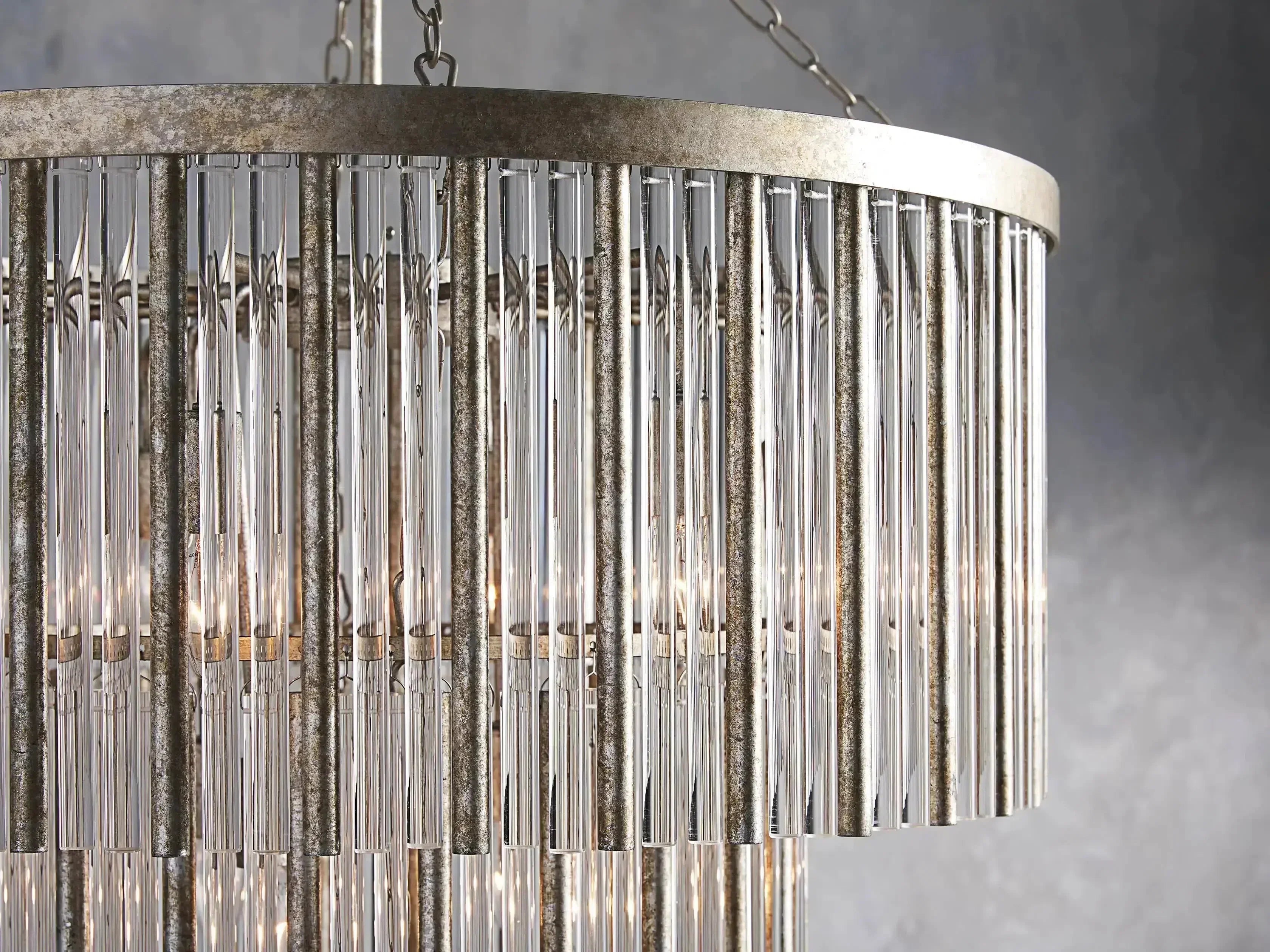 - Crafted from iron with a hand-worked Antique Silver foil finish.