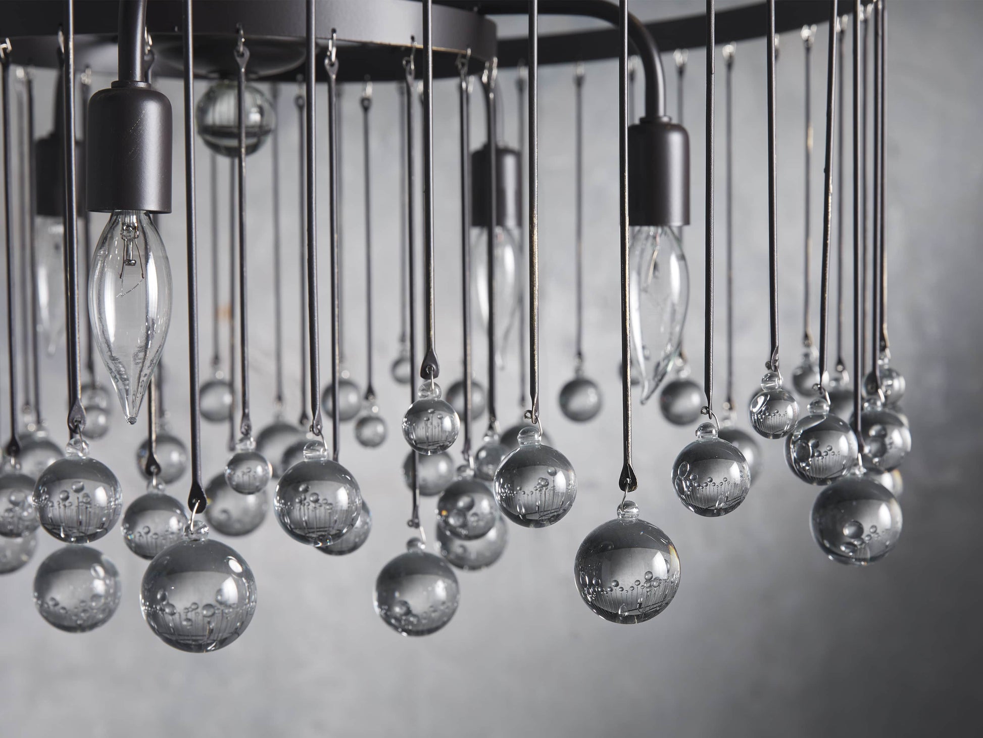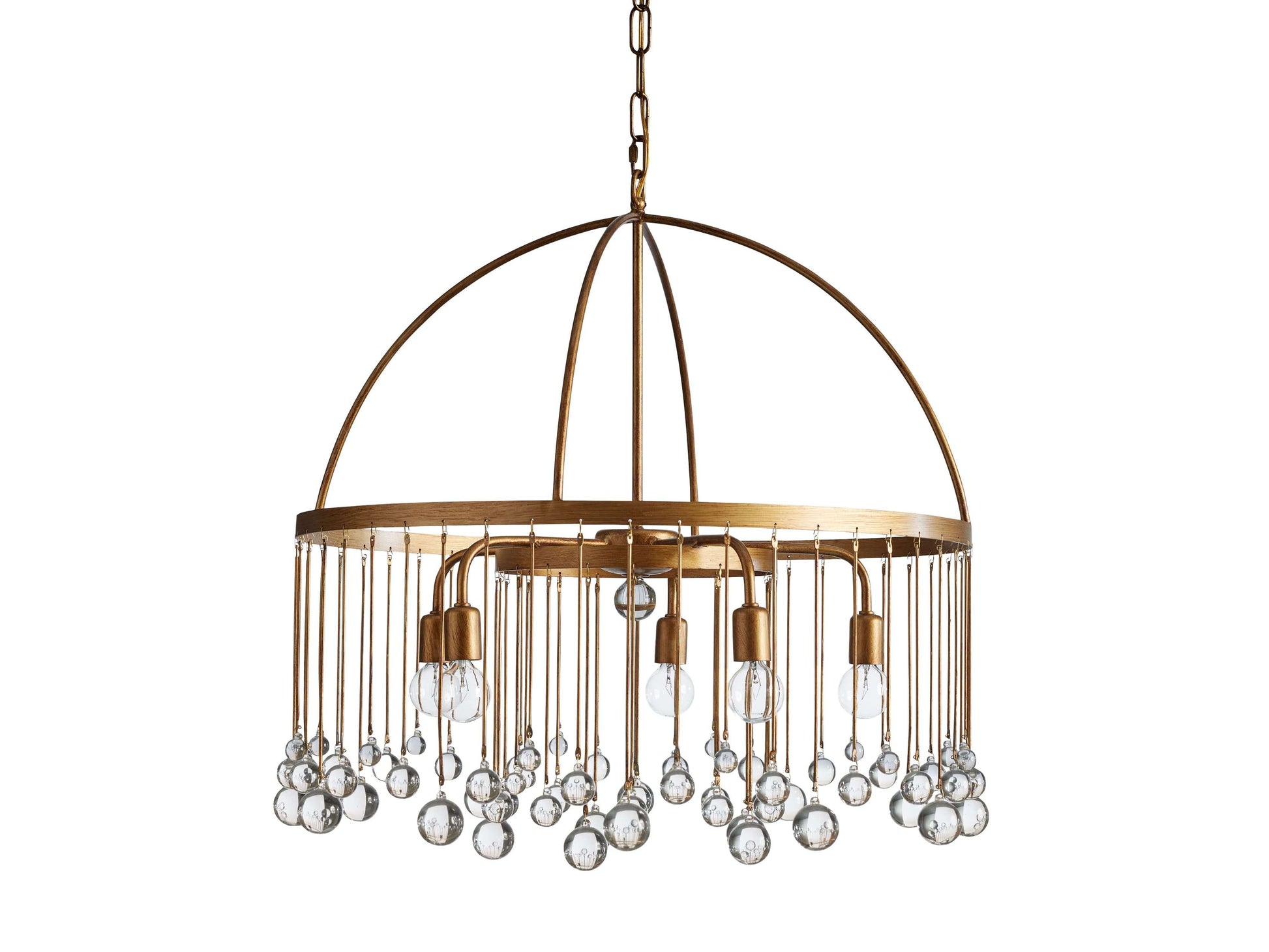 Equally at home in an ancient French castle or a downtown New Orleans loft, our Aubrey Chandelier creates dramatic ambiance in any setting. Crystal drops hanging in varying lengths from an iron cage create the illusion of movement as they catch the light, refracting brilliant beams around your room.