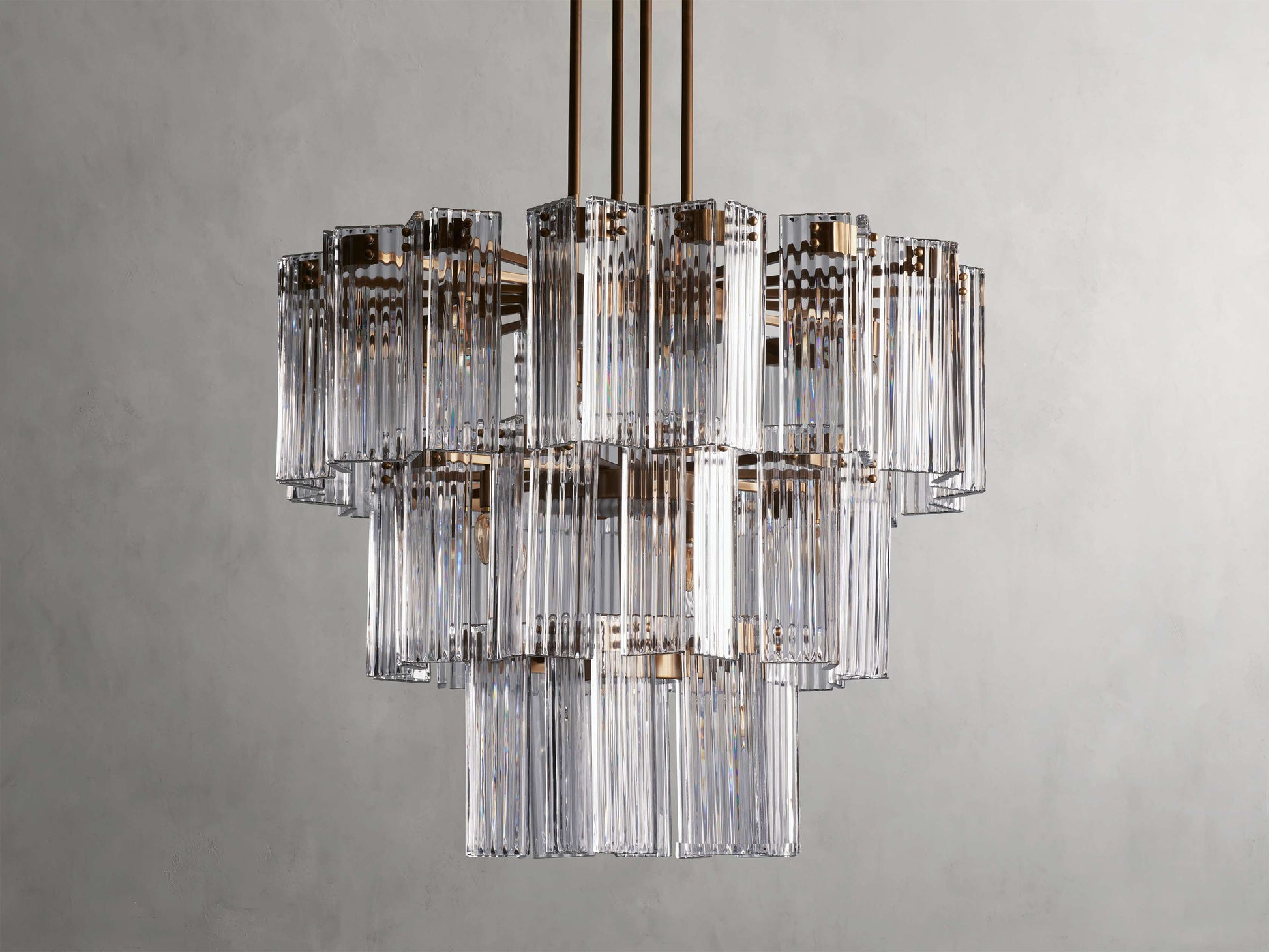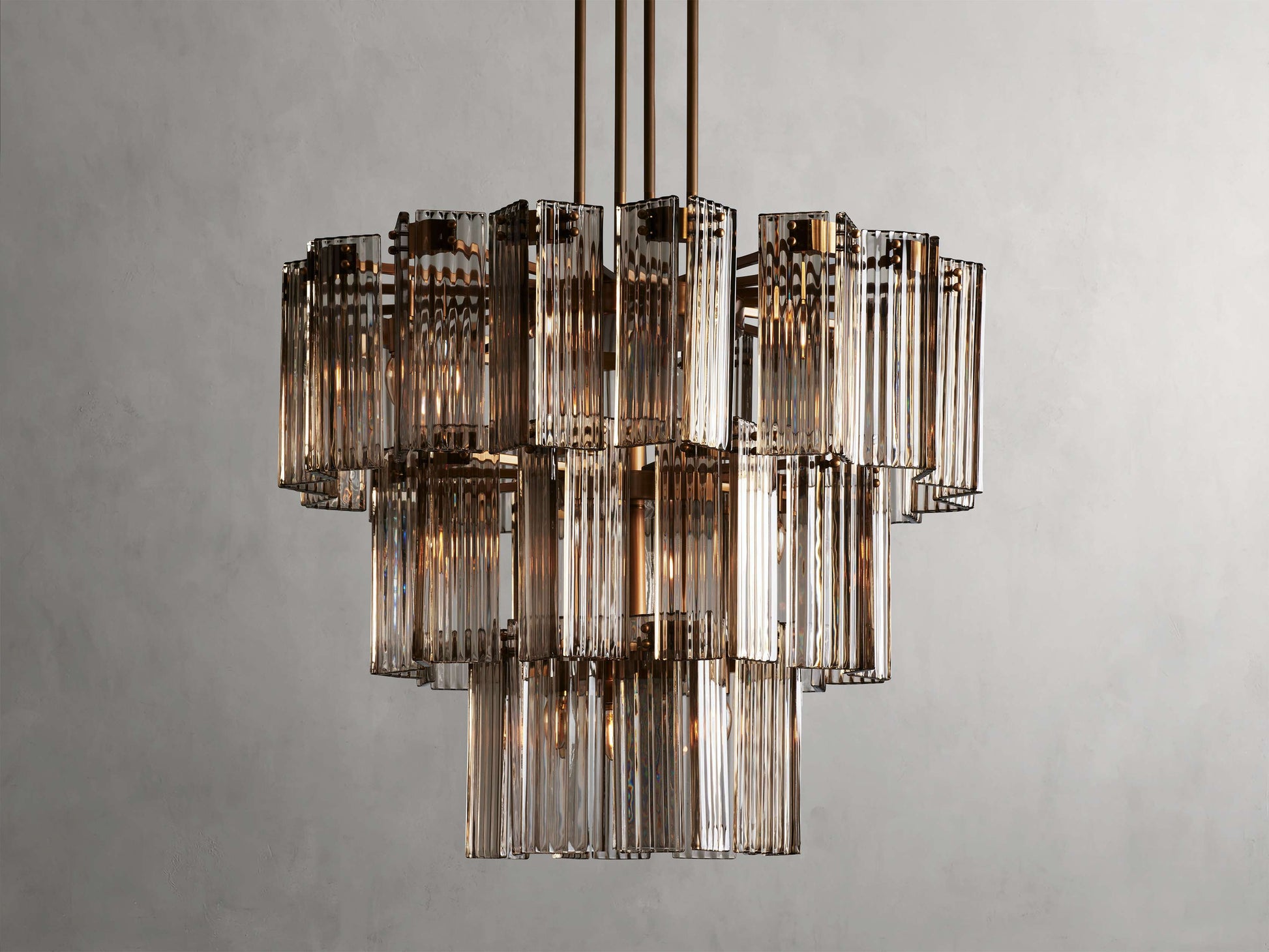 A fresh take on a traditional silhouette, our Delsie Collection radiates old Hollywood glamour. Crafted from reeded glass panels elegantly arranged around a steel frame, Delsie creates dramatic ambiance in any space.