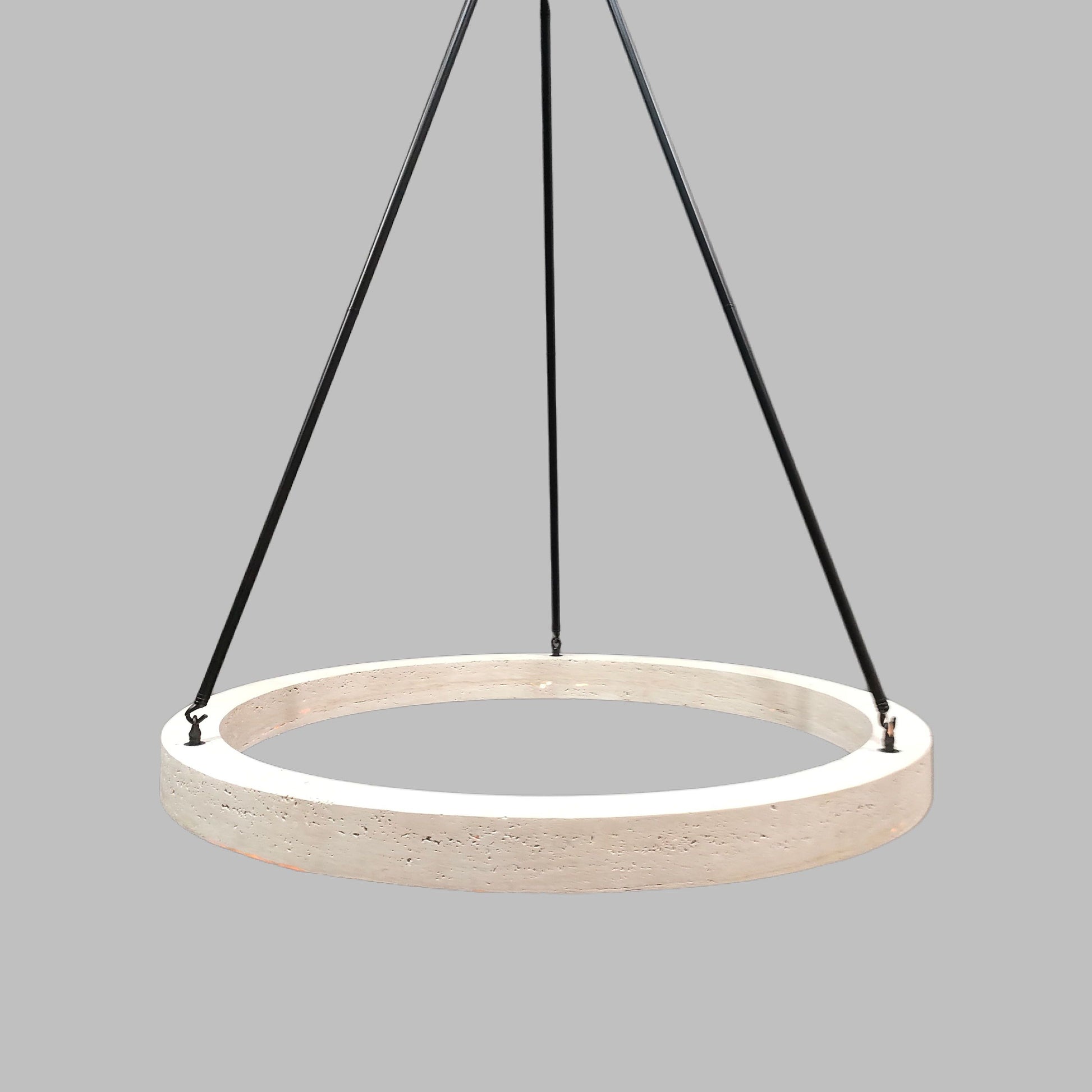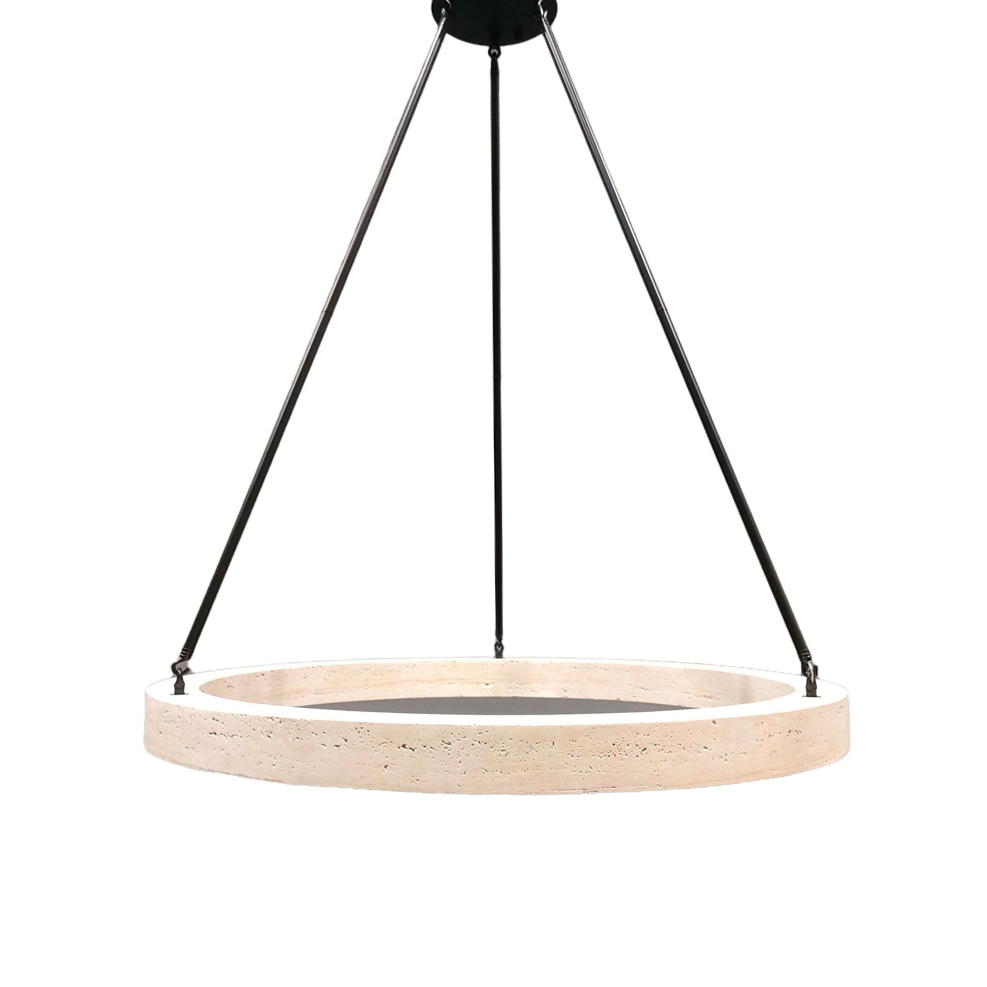 Crafted from alabaster, the chandelier highlights the stone’s organic patterns. Its sturdy build ensures durability while maintaining a neutral and versatile aesthetic.