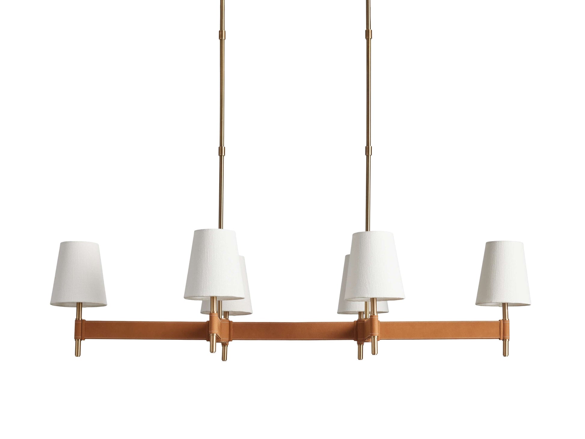 Iconic midcentury modern design and a juxtaposition of mixed materials inspire our Hastings Lighting Collection. Bases crafted from brass with an antiqued finish are complemented by tan leather stitched details and white linen shades to bring thoughtful elegance to any space.
