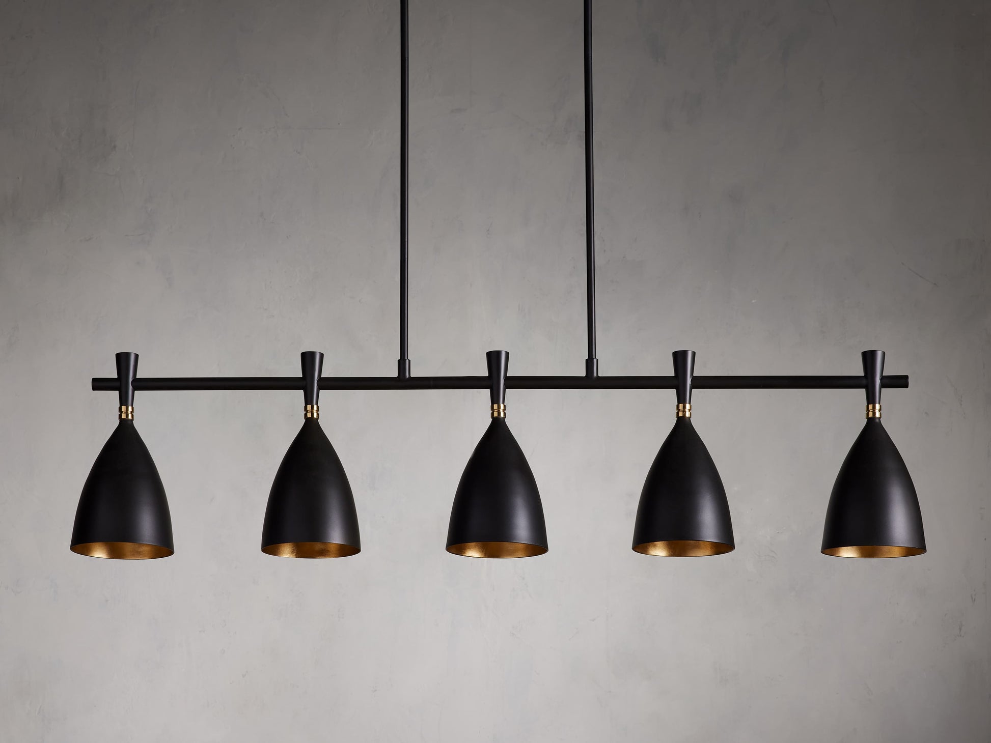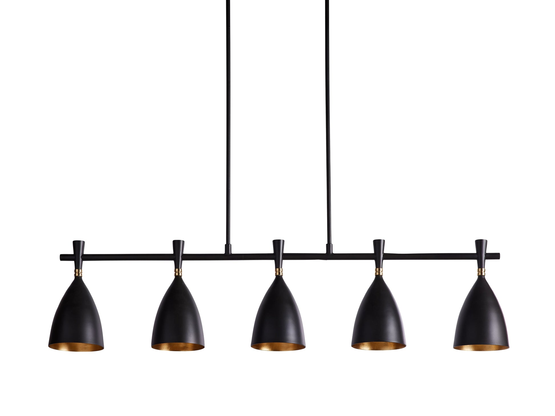 Boasting a clean dark bronze finish complemented with a contrasting gold leaf design inside the shades, our Jacarra Lighting Collection adds sophisticated elegance to any room.