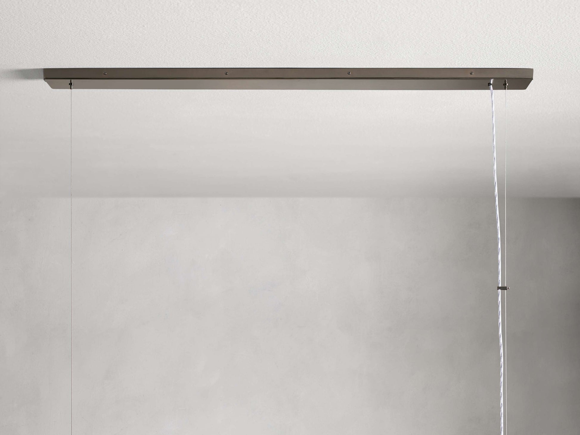 - Cord measures 144" long; Brass chandeliers feature a black fabric-wrapped cord and Nickel chandeliers feature a clear PVC cord.