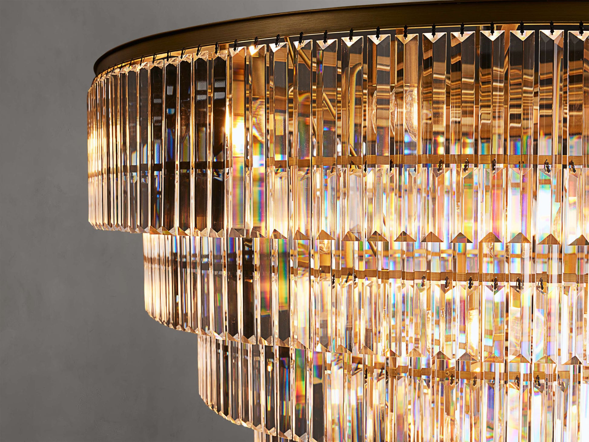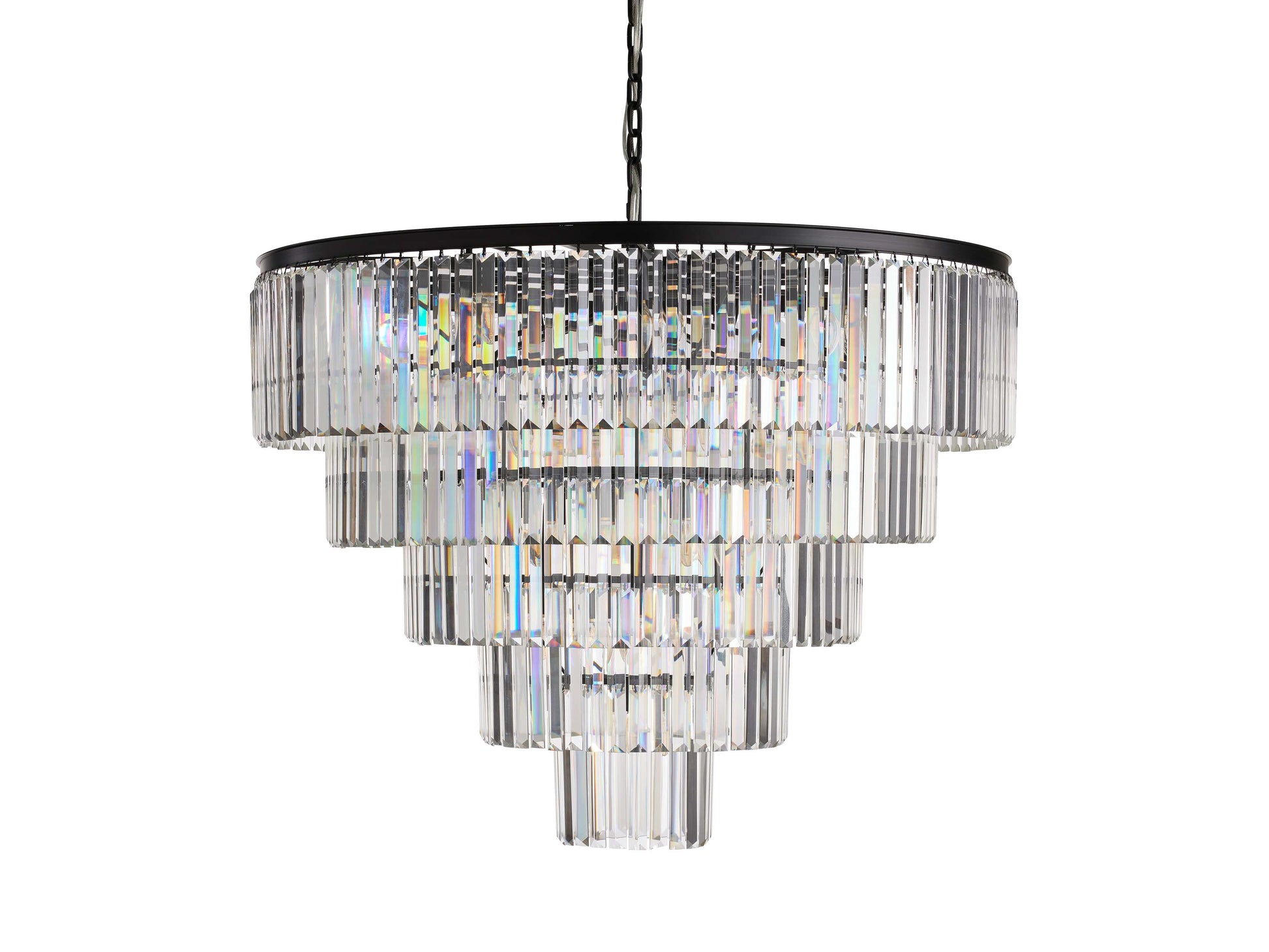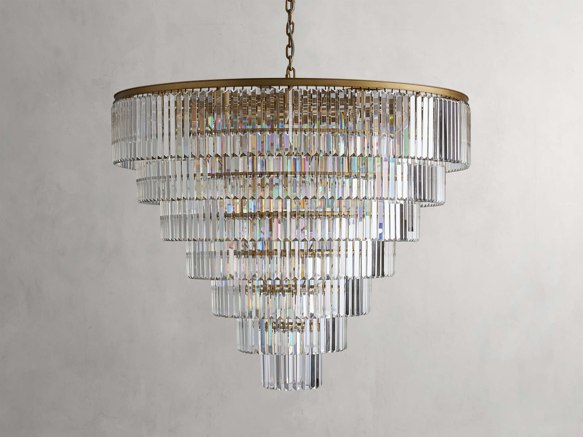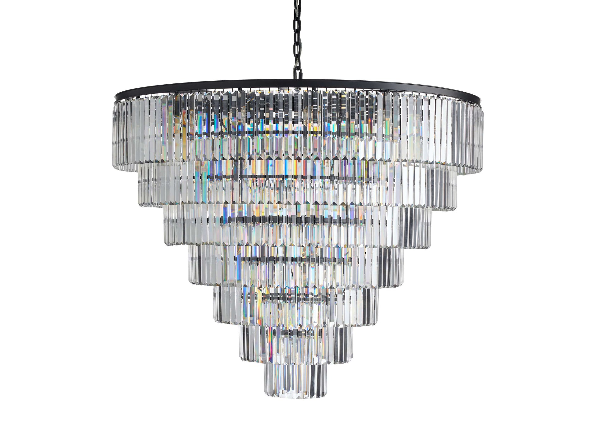 French Art Deco style of the 1920s is reborn in our glamorous Leyland Lighting Collection. Hung from a rustic iron frame, Leyland creates an atmospheric glow with its layered rows of hand-polished multifaceted glass crystals.