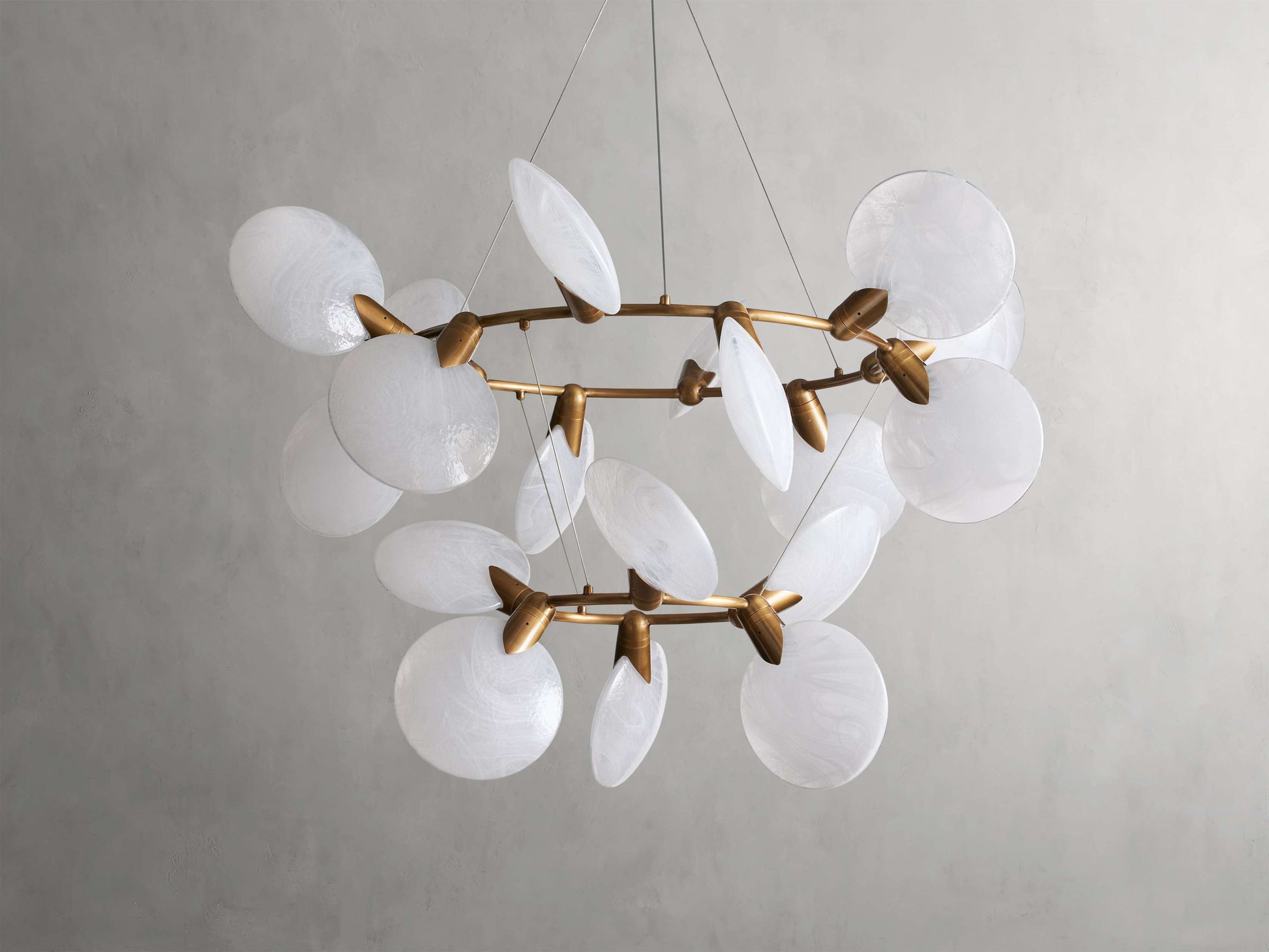 Our artfully crafted Lyla Collection brightens any room with its captivating petal-like silhouette. Each disc is hand-blown from translucent glass, the light within illuminating the natural swirls, streaks, and textural ripples.