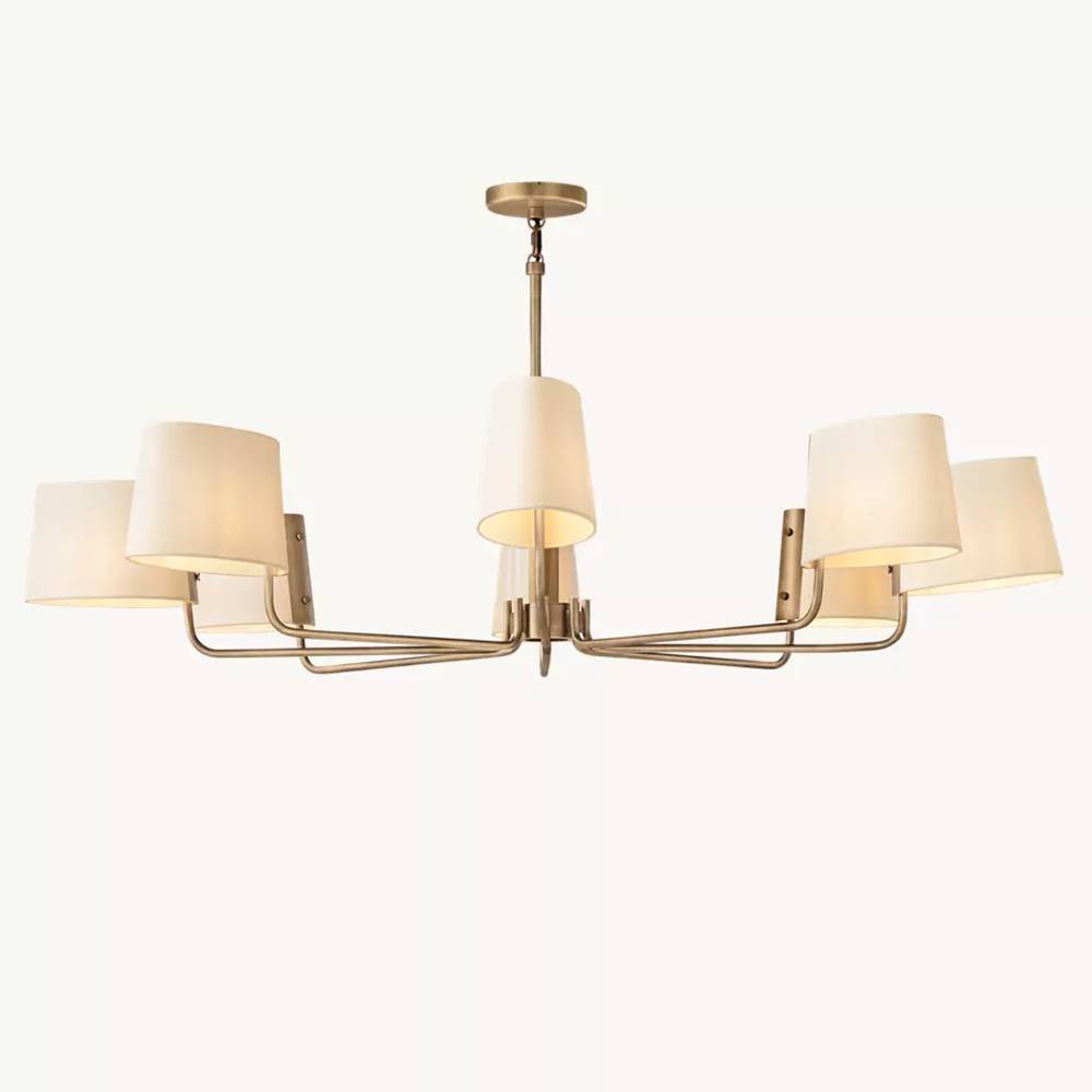 The Martineau Collection channels the elegance of mid-century French design, where slender brass arms rise in quiet symmetry to support tapered linen shades. The sculptural silhouette evokes a sense of lyrical minimalism.