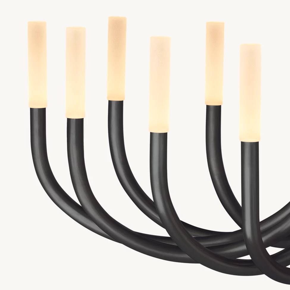 The Rousselin Collection embraces minimalist midcentury design with a refined brass frame and etched glass shades. Balanced proportions and integrated LED lighting create a warm, modern ambiance complementing classic and contemporary interiors.