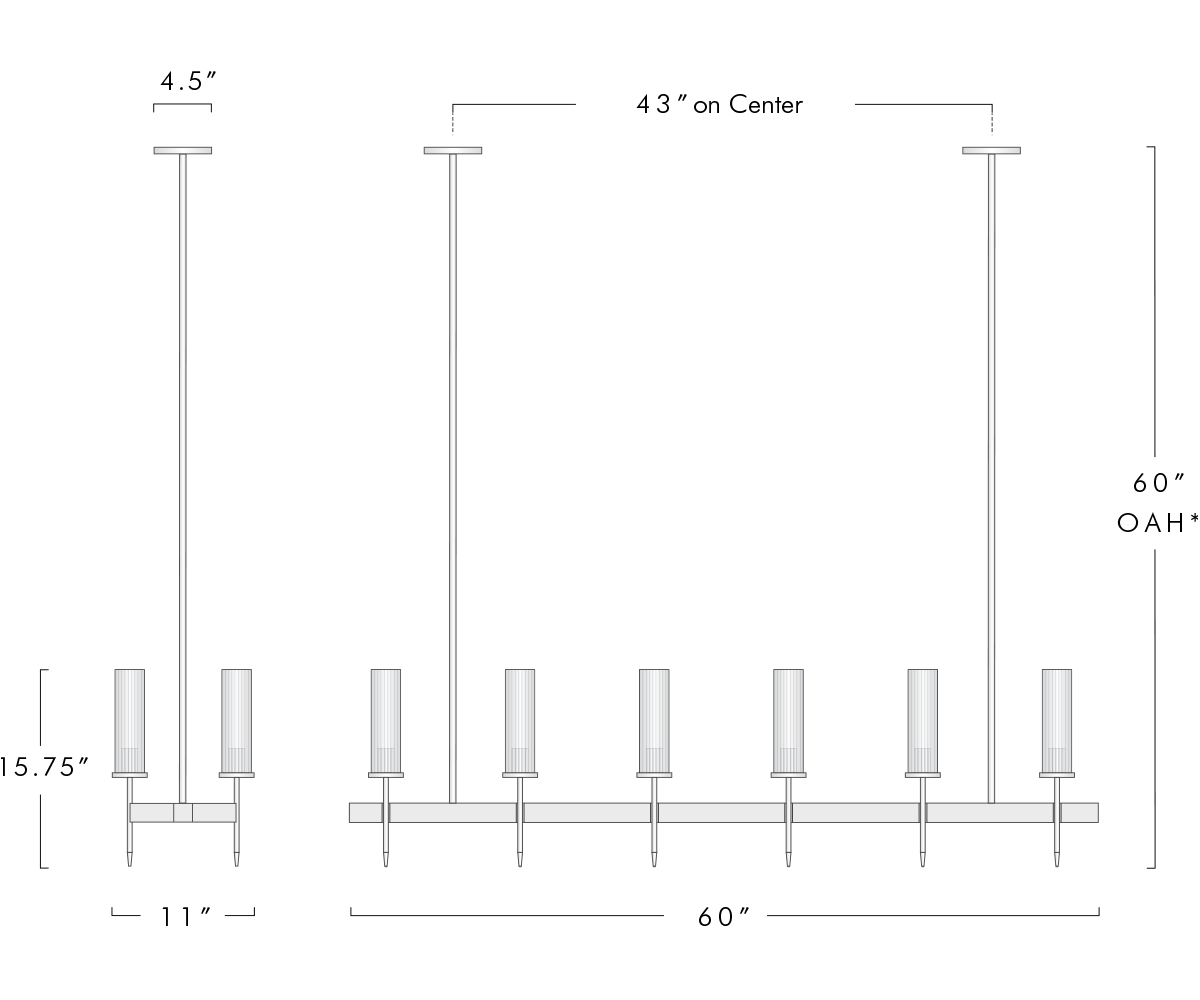 Vallon Channel Glass Linear Chandelier 60"